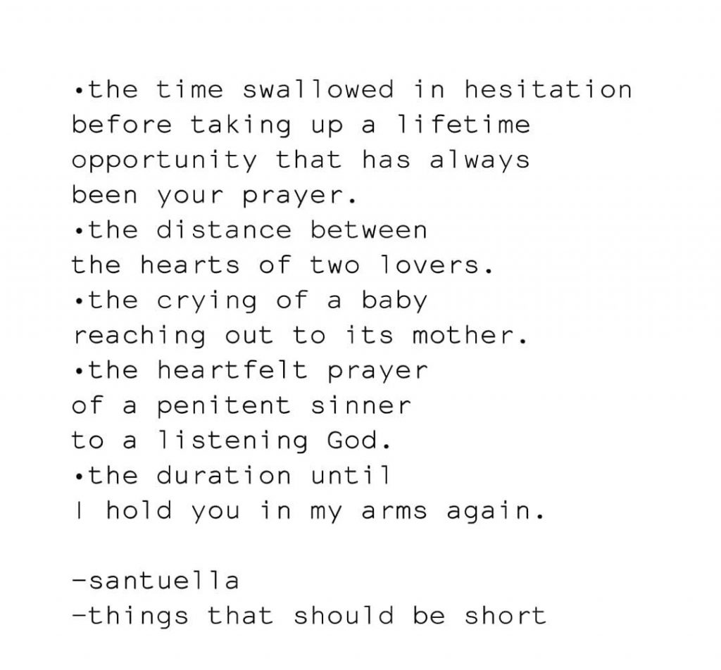 You can check out and receive updates on her pieces on her Instagram @SantuellaWrites and Blog, Totallyunhinged.wordpress.com