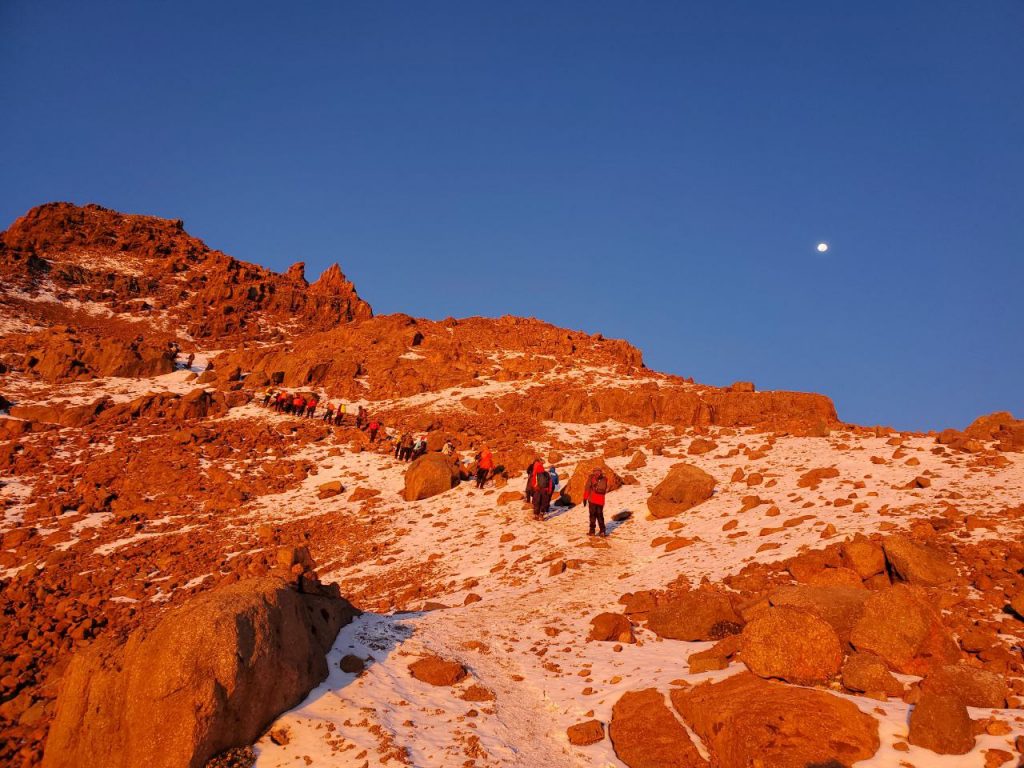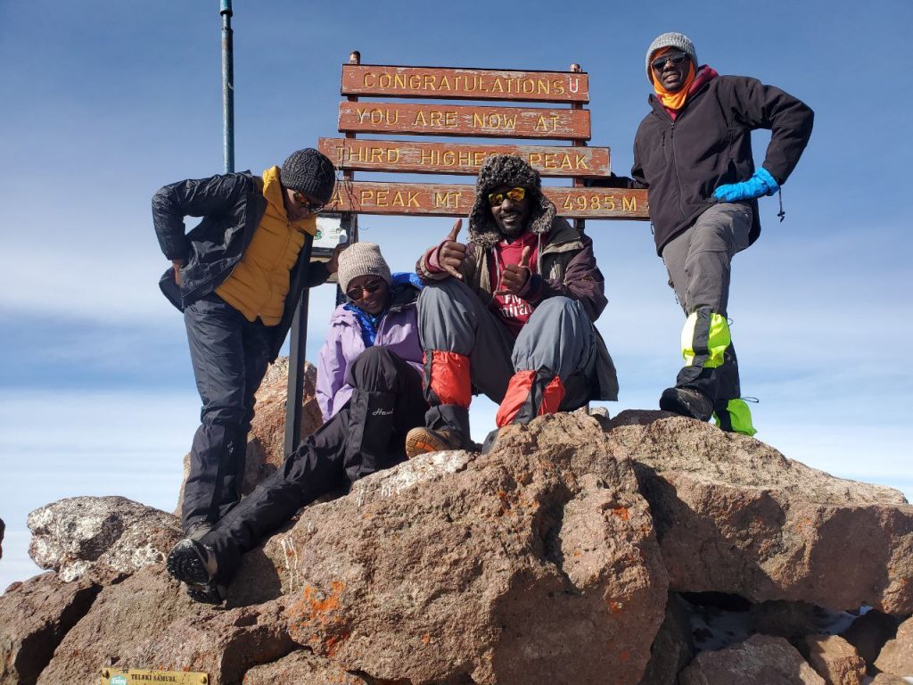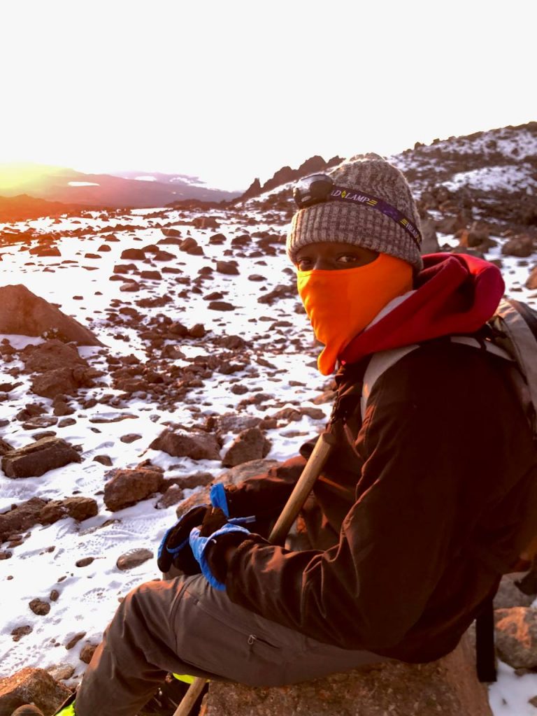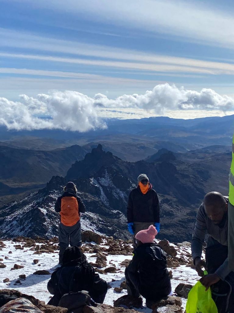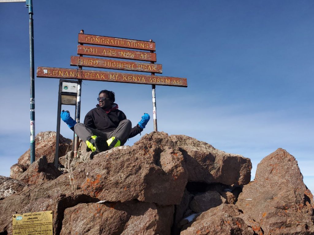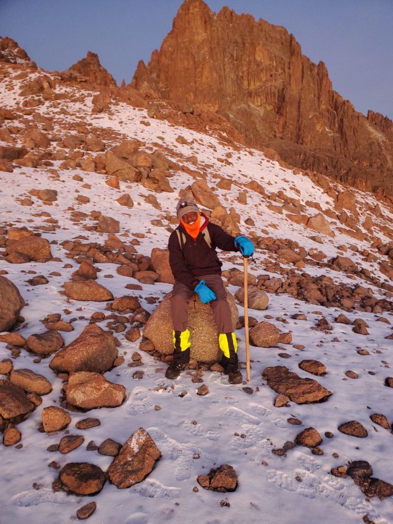 At around 7 am, I made it. We made it. I was on top of the world, tears in my stomach as the African warrior I was. For hours, I felt all the pain of the universe and it forged me into a fighter. But now, both my sticks were firm and happy. For several sweet minutes, I didn’t have to hide behind a mask, not of happiness, not of coping, I could be honest and get heartfelt warmth from the sun. I was 10% Babito and it was 100% Mt. Kenya but I conquered it.